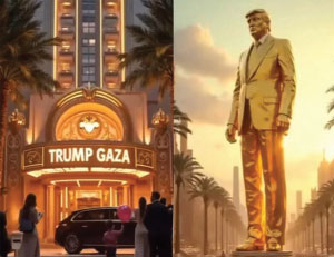 Now, as a reward for standing with Israel in obilterating Gaza, in September 2025, a new headline reads, “Netanyahu Breaks Ground on Central Israel Beachfront ‘Trump Promenade,’ Citing the Gaza Riviera Plan.” AI pictures abound with Trump’s golden likeness dangled like a gleaming carrot for money to rebuild Gaza. I wonder what new monument was offered to Trump for leading the attack on Iran.